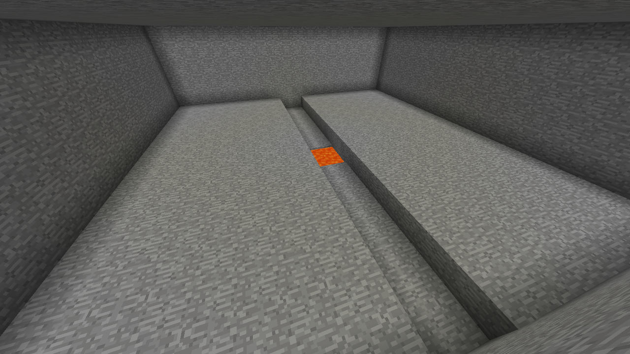 下から2マス目に看板を設置し、3マス目に溶岩を流します